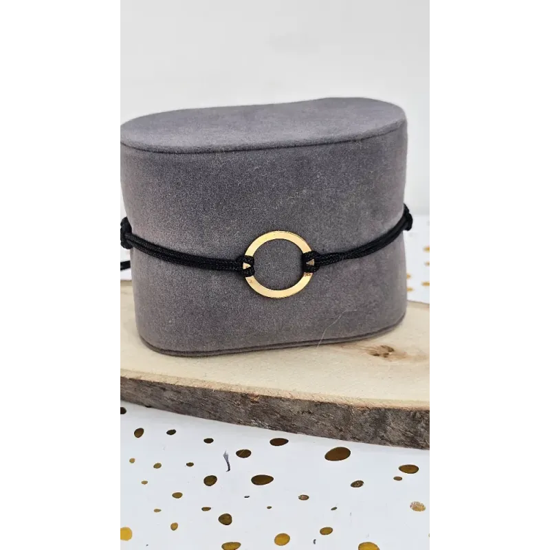 A minimalist men's bracelet featuring an 18K gold circle charm on a sleek black adjustable thread. Casual, stylish, and effortlessly wearable every day. Adjustable fit suits all wrist sizes.
