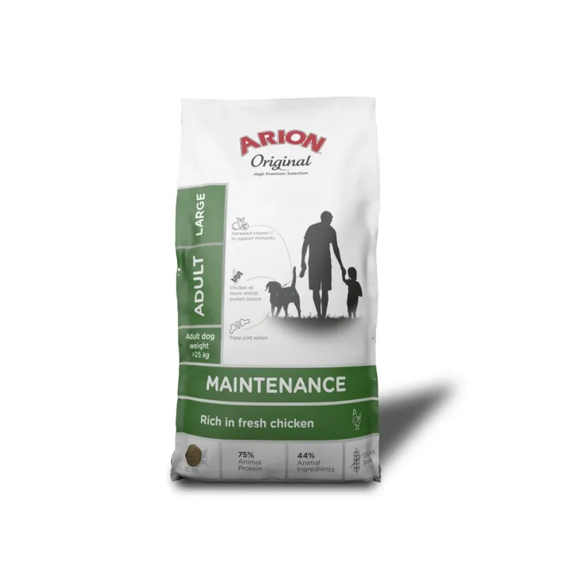 Arion Original Maintenance is a complete food for adult dogs. This gluten-free chicken-based recipe contains prebiotics, antioxidants and high amounts of vitamin C to support immunity.