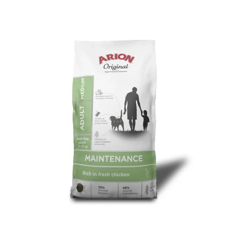 Arion Original Maintenance is a complete food for adult dogs. This gluten-free chicken-based recipe contains prebiotics, antioxidants and high amounts of vitamin C to support immunity.