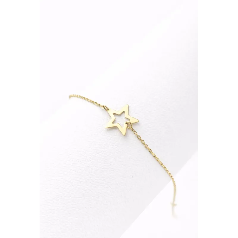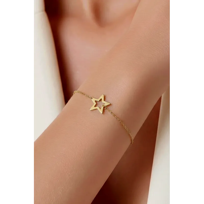 Reach for the stars with this delicate Celestial Star Bracelet crafted in radiant 18K gold. A charming star charm sits at the center of a refined gold chain, adding a touch of cosmic elegance to any outfit. Lightweight and minimalist, it's perfect for daily wear, stacking with other bracelets, or gifting to someone special. From Aura's Jewellery, handcrafted for those who wear their dreams.
