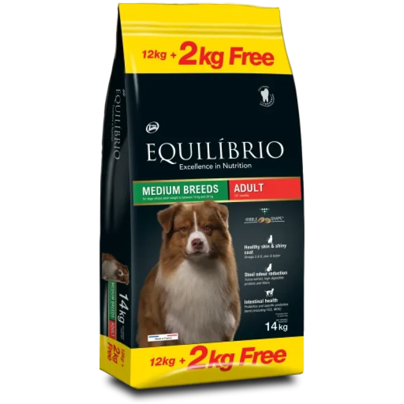 Balanced diet for adult dogs with chicken and fish meal. Helps maintain ideal body weight, offers a smooth and shiny hair while at the same time preventing tartar. Composition: Chicken meat, fish meal, rice, corn, flaxseed yeast, dried egg, total poultry fat (naturally preserved with tocopherols and rosemary oil), fish oil, skimmed soybean oil, probiotics, inulin, potassium chloride, Yucca schidigera extract, Sodium hexametaphosphate, premix of vitamins, minerals. Protein 25%, Fats 15%, Fibrous substances 3%, Humidity 10%, Ash 7%, Calcium 1.1%, Phosphorus 0.75%, Linolenic acid 0.23%, Linoleic acid 1.15%, Inulin 0.55%, Probiotics 1%.