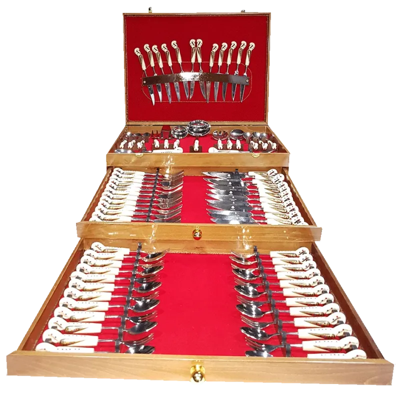 Jezzine cutlery 80 pieces set, crafted by hand, served in a prestigious wooden box with the Lebanese ceder engraved on the back. hand made cutlery