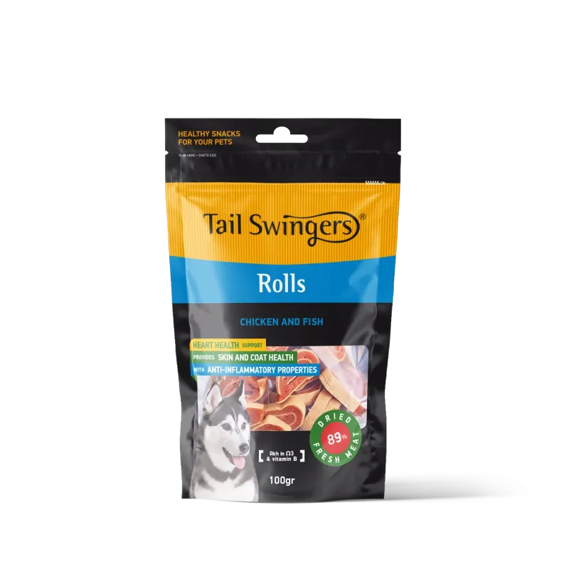 TAIL SWINGERS - CHICKEN and FISH ROLLS 100 G