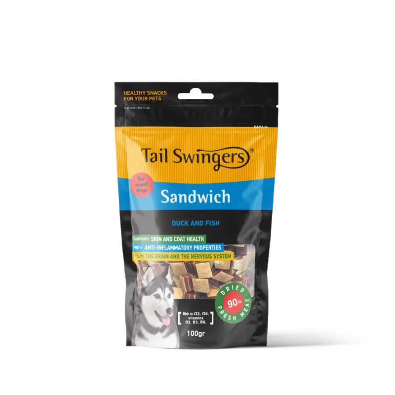 Premium quality Tail Swingers - Duck & Fish Sandwich - Small Bites (100G) — a great choice for your beloved pet.