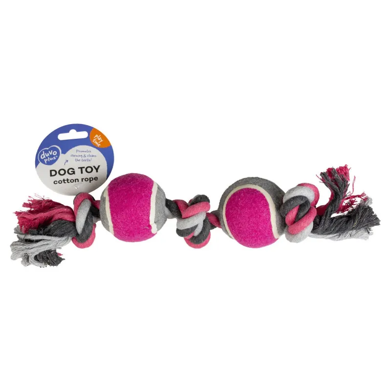Cotton rope cleans teeth. With 2 tennis balls for extra fun. Suitable for all dog breeds. Ideal throw and fetch toy | Dimensions: 33 cm