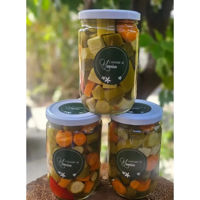 Yasmina Mixed Pickles is a vibrant assortment of freshly picked vegetables preserved in the traditional Lebanese way, crafted with care by L'Histoire De Yasmina. Each jar bursts with color and authentic baladi flavor — a true reflection of Lebanese culinary heritage. The vegetables are pickled using natural ingredients, free from artificial additives, delivering a crisp and tangy taste that elevates any meal. Homemade with love in small batches, this is the kind of organic, wholesome preserve that Lebanese grandmothers have been making for generations. Perfect as a mezze side, sandwich filling, or everyday table staple.